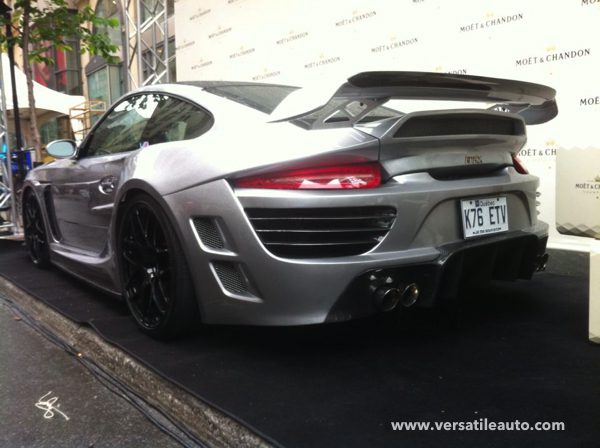 Red 997 Carrera with Prior Design body kit.